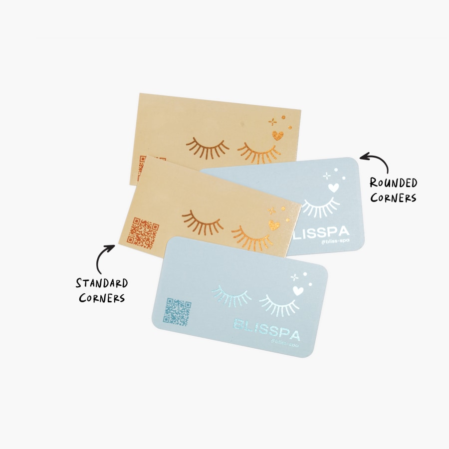 While foil business cards simply look great, they also help you direct customers where to look. You can spotlight the key information or design elements that you want to stand out. This can help keep timely messaging, updates or branding top of mind.